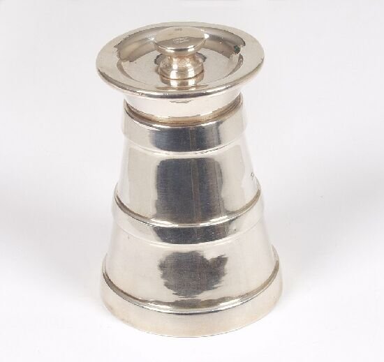 A silver pepper pot grater in the form