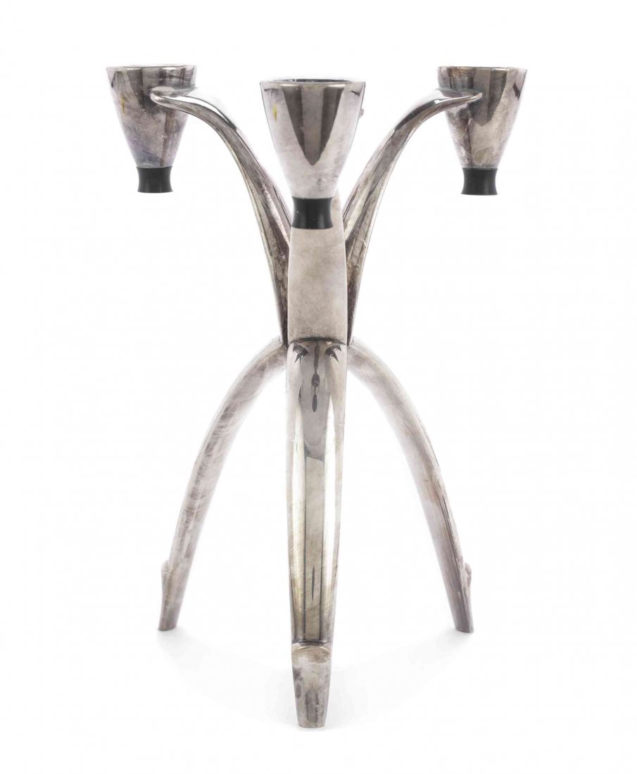 A Silver-Plate Modernist Three-Light Candelabrum,