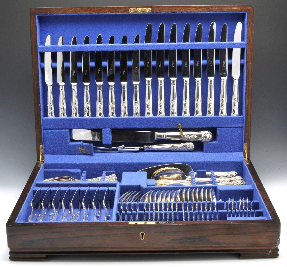 A silver plated King's Pattern canteen, etc.
