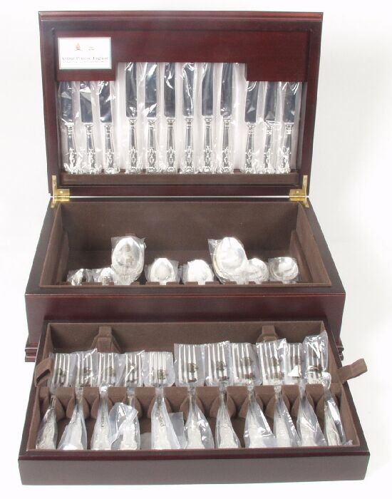 Inlaid Silver Plated Silverware Set Holmes & Edwards Silverware13 hrs LeftSheffield 1996 by Carr's A cased Elizabeth II sterling silver table service of flatware / canteen5 days Left55 Piece Sterling Silver Wallace "Saxon" Flatware SetFeb 28, 2026A SILVER KING'S PATTERN TABLE SERVICE4 days LeftInternational Sterling Silver Charmaine Flatware Set 48 Pieces for 12 Service2 days LeftTowle Legato Pattern Sterling Silver Flatware Set - 68 Pieces Total3 days LeftReed & Barton Dancing Flowers Sterling Silver Flatware Set 83 pcs Service for 12 UnusedMar 01, 2026Wallace Rose Point Sterling flatware in velvet lined box, 11 knives, 12 salad forks, 12 dinnerFeb 24, 2026International Silver Royal Danish Sterling Flatware Set 50 Pcs for 8Feb 21, 202672 Piece Sterling Silver Frank Smith "Federal Cotillion" Flatware SetFeb 28, 2026Alvin Chapel Bells Sterling Silver Flatware Service Dinner Set of 55 Pieces with Wooden CaseFeb 25, 2026Towle Silver Flutes Sterling Silver Flatware Set for 8 47 Pieces with Storage Chest2 days LeftGorham English Gadroon Sterling Silver Flatware Set 53 Pieces for 8Feb 24, 202664 Piece Sterling Silver Towle "Legato" Flatware SetFeb 28, 2026International Silver Royal Danish Sterling Silver Flatware Set 86 Pieces for 12 with Storage Chest2 days LeftTowle "French Provincial" Sterling Silver Flatware Set of 41 in Sterling SilverJul 27, 2025