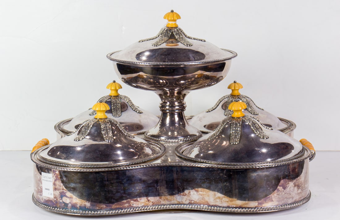 Silverplate Tea Set, Tray, Coffee pot etc.Mar 20, 2026(3) Vintage Towle Silversmiths Silverplated Serveware Pieces - AS ISMar 29, 2026Group of silver plate tea sets etc.Mar 19, 2026SILVERPLATE TEA SERVICE GROUPING4 days LeftEnglish Early 20th Century Silver Plate Lazy Susan Round Server Joseph Elliot and Sons SheffieldGEORGIAN STYLE SILVERPLATE REVOLVING SUPPER SETMar 25, 2026SILVERPLATE TEA AND COFFEE SERVICE18 hrs Left3 Piece 800 German Silver Platter Tray Set 19004 days LeftHandmade 925 Sterling Silver Honey Dish Tray Set Floral DesignMar 19, 2026Tiffany Sterling Silver TablewareMar 24, 2026Group of silver plate tea setsMar 19, 2026Silver plate covered dishes, ice buckets etc.Mar 19, 20266 pcs Vintage Silver Plated Dish Assortment, incl. 2x Pairpoint & 2x Reed & Barton. See pics.Tuttle Onslow 6pc Silverplate Tea Set Vintage 1960s1 day Left