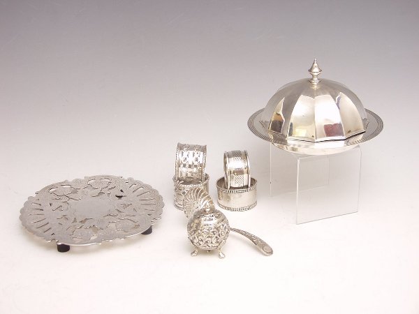 Lot of 4 Silver Napkin Rings - 3.74 Oz. Troy4 hrs LeftSterling 925, 800 French Silver & Silverplate LOTFeb 26, 2026Meridan, Imperial Silver & Others Assorted 9pc LOTFeb 26, 2026(17) COLLECTION OF STERLING, .800 SILVER & WEIGHTED STERLING TABLE ARTICLESFeb 22, 2026Collection of silver consisting of pepper and salt shakers, jugs, bell, bowl and statue of a boy,Feb 15, 2026Group of 5 Silver ArticlesFeb 26, 20267 Sterling Silver Table ArticlesFeb 26, 2026ANTIQUE AND VINTAGE SILVER PLATED TABLEWARESFeb 22, 202624 Sterling Silver Table Articles, Mainly SaltsFeb 26, 2026Group of Silver-Plated Table Articles4 days Left4 Sterling Silver Table Articles and an Oyster SaltFeb 26, 2026Modern Silver Plate Tableware, 5 Pcs.Mar 12, 2026Seven Silver and Metal Glass Articles2 hrs Left6 Sterling Silver Table Articles,Feb 26, 2026Collection of Sterling Silver Articles, 92 hrs Left8 Sterling Silver Baby and Table ArticlesFeb 26, 2026