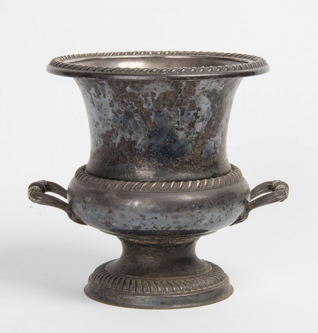 A silver plated twin-handled campagna shaped wine