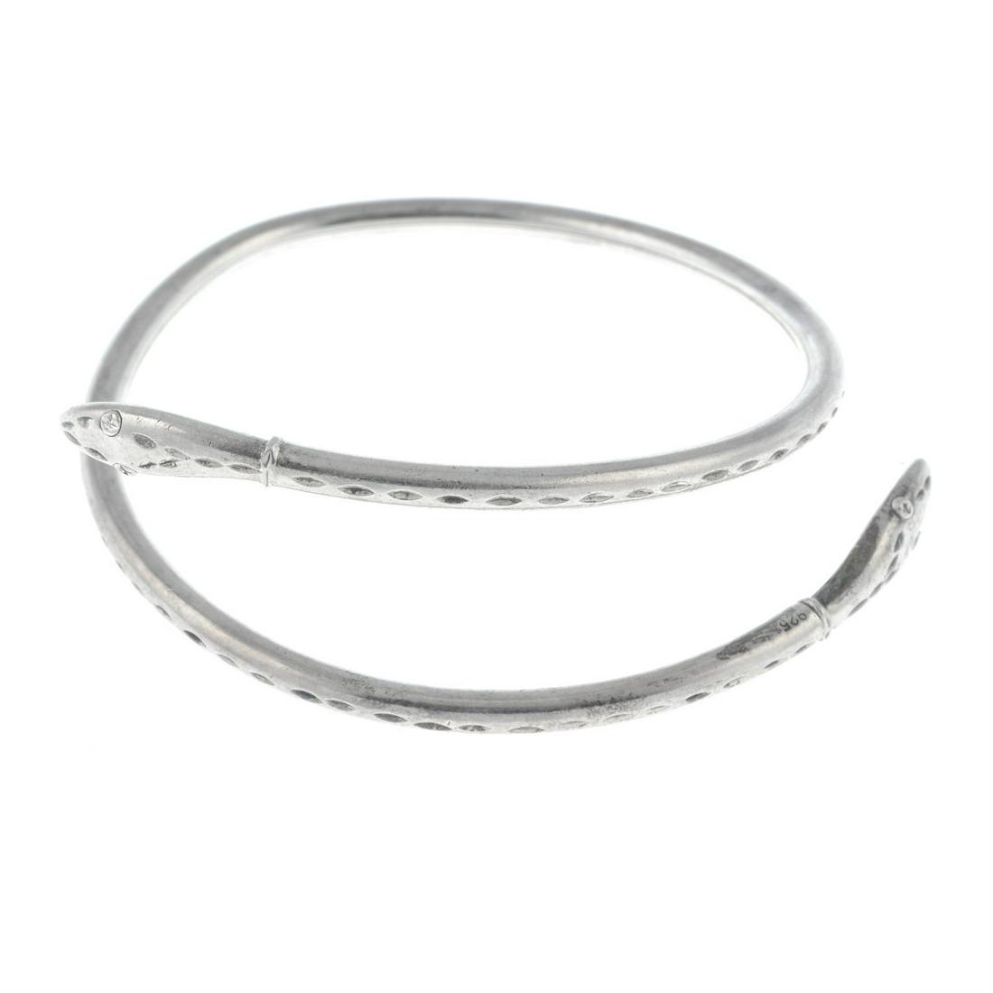 A silver snake bangle.