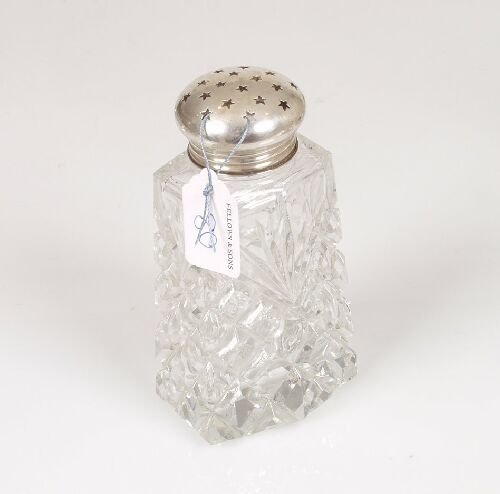 A silver topped caster with cut glass b
