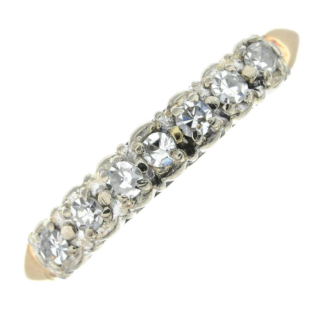 SoldTwo diamond rings. To include an old-cut diamondTwo diamond rings. To include an old-cut diamond three-stone ring, together with an illusion-set single-cut diamond five-stone ring. Estimated total diamond weight 0.15ct. Weight 4.5gms.See Sold Price