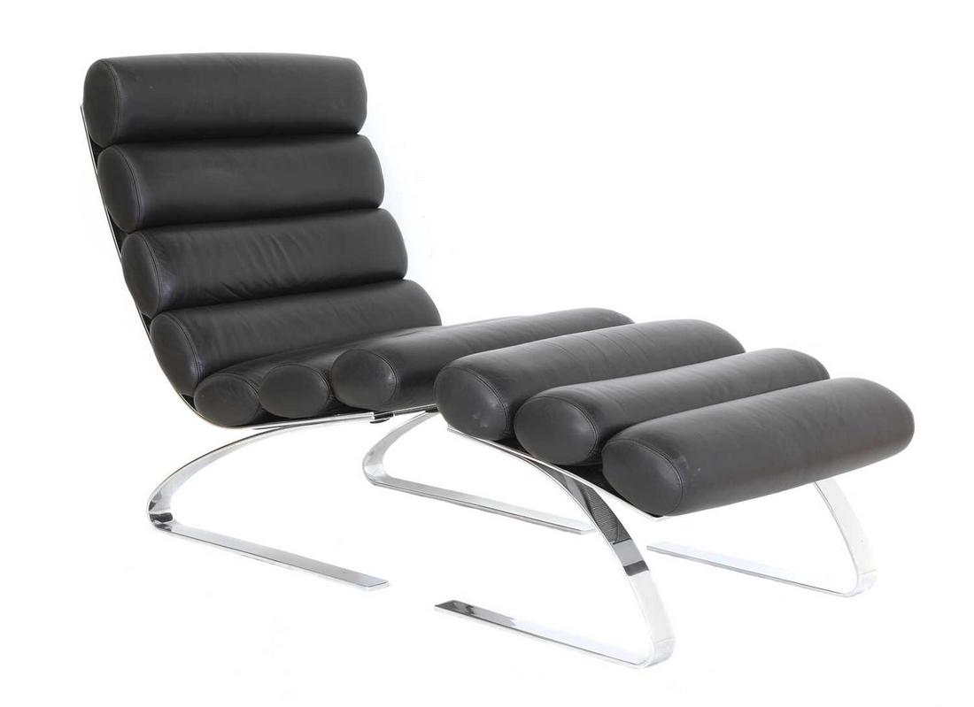SoldModern Design Chair & FootstoolModern design chair and footstool. Chair labeled "Emphasis". Chair has slight stains.See Sold Price