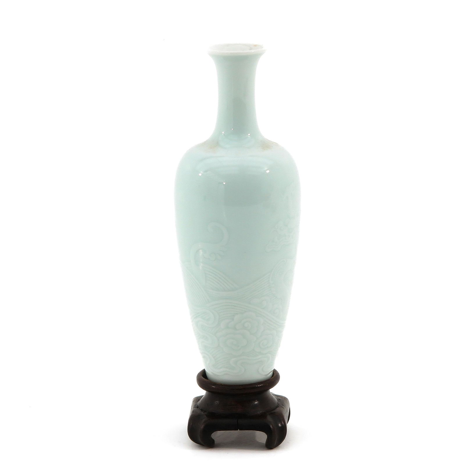 SoldAntique Chiense Porcelain Blanc de Chine VaseTianqiuping vase with beautiful intricate incised flowers and clouds around the body, and leaves on the neck. Dimensions: 8.5"W x 13.75"H Country of Origin: ChinaSee Sold Price
