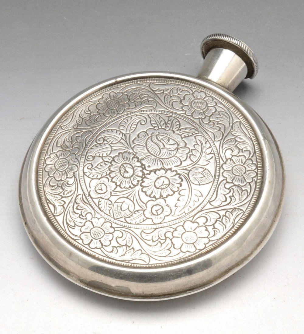 Sterling Silver Southwestern Tobacco Bottle/ Snuff BottleDominick & Haff Aesthetic Sterling Flask with Dragonfly Design 1880s5 days LeftA silver cased silver plated pocket watchGold Filled Pocket WatchFeb 24, 2026American Coin Silver Horse Trophy PitcherFeb 25, 2026Cutch, Bhuj circa 1890 by Mawji Raghavji A late 19th century Anglo – Indian silver spirit hipFeb 18, 2026Swiss Pocket Watch with .800 Silver CaseMar 15, 2026Soviet Marathon Pocket Watch, 18 Rubis, Made in USSRMar 15, 2026Cutch circa 1850 A mid-19th century Anglo – Indian unmarked silver rose water sprinklerFeb 18, 2026TIK-TAK Dubsky 1930 Austria Semi Automatic Pocket Petrol Lighter In Chromed SteelFeb 18, 2026Chinese silversmith. Lidded jar richly decorated in relief with flowers and ornaments.Formerly in my collection, a pure copper vase with high-relief engraving and silver gilding of plum15 hrs LeftBlown, Cut and Wheel-Engraved Glass Brandy Decanter and StopperFeb 18, 2026Amsterdam 1745 by I.H, perhaps Jean Hubert (1728-61) A mid-18th century Dutch silver miniature teaFeb 18, 2026Tiffany & Co. Aesthetic Movement Hand-Engraved Sterling Silver Pocket Flask 1891-19026 days LeftA Swiss Musical Jewelry Box, “Tales of Hoffmann (Barcarolle),?? Mid-20th Century4 days Left
