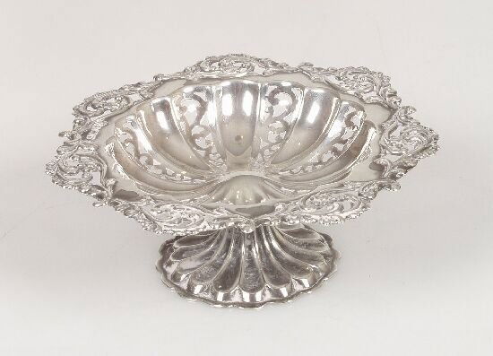 SoldRogers Sterling Silver Footed Candy DishA nice sterling silver candy dish with dragoon details. Hallmarked "Rogers Sterling Weighted Reinforced 1940" Note: One small ding on the base.See Sold Price