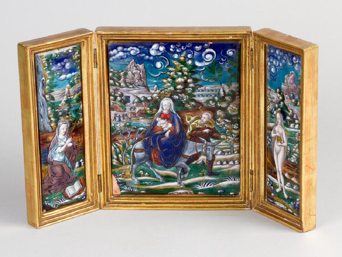 A lot of three German Sitzendorf and Passau variously decorated porcelain figuresFeb 24, 2026Estate Lot of 2- Hand-Painted Wood Engravings from Plato's "The Banquet" Beauty & The Oracle w/COAMar 15, 2026Lot of 3 icons. Russia. Late 19th century. One of the presentation of Christ; Scenes of the life ofMar 01, 2026Two Chinese Export Reverse Glass Painted Works, 19th CenturyThree Collectibles with Porcelain MiniaturesMar 05, 2026TWO 19TH C FRENCH LIMOGES ENAMELED COPPER PLAQUESMar 07, 2026THREE ANTIQUE PAINTINGS, TWO ON PORCELAIN PLAQUESMar 07, 2026FRENCH LIMOGES ENAMEL CORONATION PLAQUEFeb 24, 2026Medieval-style triptych in enamels, 19th centuryFeb 25, 2026Three Renaissance Style Enameled Lead Glass PanelsFeb 27, 2026Large French Enamel & Gilt Bronze Table Screen ClockFeb 26, 20264 Enameled Scenes & FrameMar 14, 2026Exceptional 19th Century French Neo-Gothic TriptychFeb 25, 2026Italian Wood Triptych Holy FamilyANTIQUE 19TH C EUROPEAN HAND PAINTED MINIATURE PAINTINGSMar 01, 2026Two Antique Spanish Colonial Retablos, First- H.- 6 1/2 in., W.- 4 1/2 in., Framed- H.- 8 in., W.- 6Feb 27, 2026