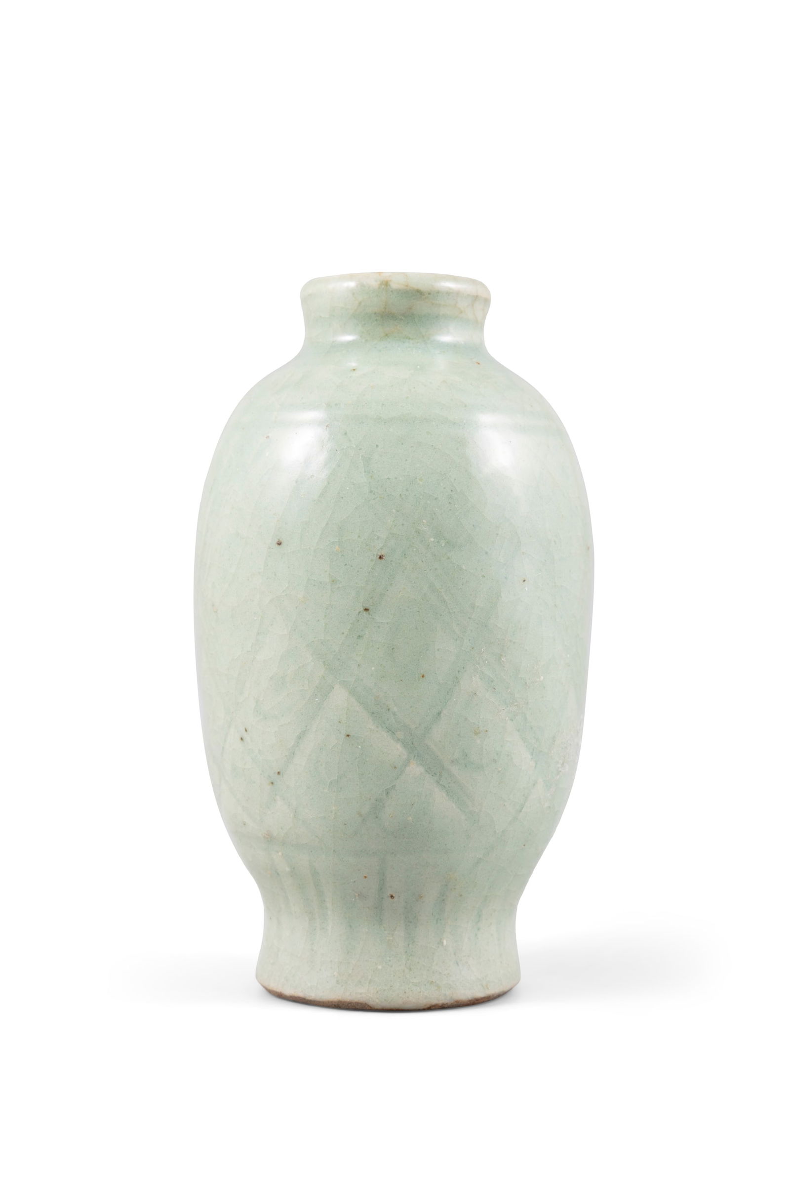 A SMALL LONGQUAN CELADON GLAZED VASE 明 龍泉窰青釉刻