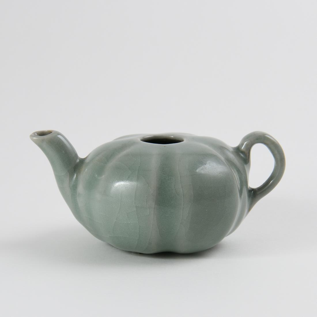 A SMALL RIBBED 'LONGQUAN' CELADON EWER