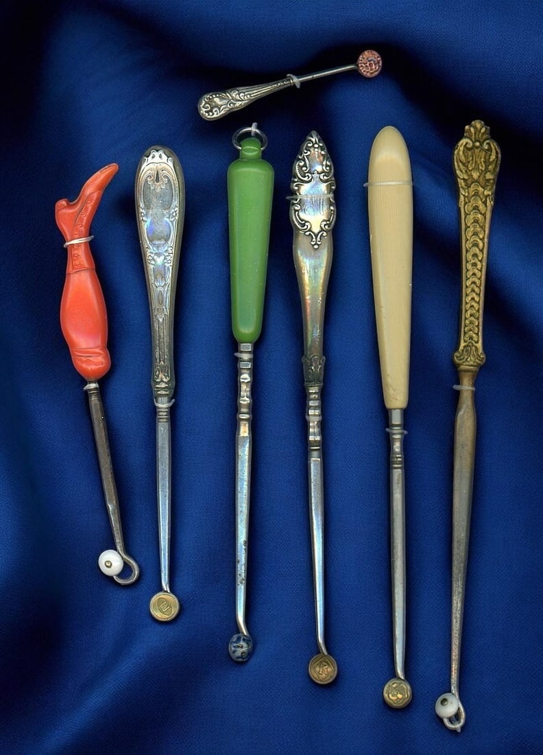 Silver Button Hooks, Folding Hooks & Curling Tools