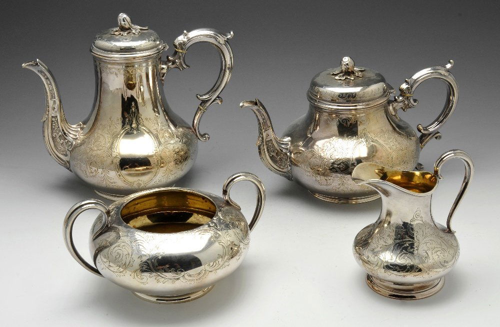 Lot of Assorted Silver Plate, etc. Including Creamer and Sugar, Cups, Pitcher, etc6 days Left(8 PCS) ENGLISH STERLING SILVER BEVERAGE SERVICEFeb 22, 2026Five Piece Silverplated Tea ServiceFeb 16, 2026Gorham Silverplate Tea and Coffee Service in Medallion PatternFeb 12, 2026English Sterling Silver Tea and Coffee Service3 days LeftA Vintage Set of 5 Pieces Silver-Plated Tea/Coffee3 days LeftDGH Goldsmith Handwrought Sterling Silver Tea Set 4pc Grape Motif5 days LeftANTIQUE SILVER COFFEE TEA SERVICE4 days LeftGeorge V Britannia Silver Tea Service Set, 4 Pcs.2 days LeftFive Piece Silverplated Tea Service, "Lancaster Rose" by PooleFeb 16, 2026A Vintage Set of 4 Pieces Silver-Plated Tea/Coffee3 days LeftA Vintage Set of 5 Pieces Silver-Plated Tea/Coffee3 days LeftReed & Barton Sterling Four-Piece Tea & Coffee Service w/a Tiffany Silver Plated Tray.5 days LeftRUSSIAN SILVER IMPERIAL PRESENTATION 5 PIECES TEA SET4 days LeftAmerican Sterling Silver "Stieff Rose" Three-Piece Tea Set1 day LeftGodinger Mini Silver Plated 3 Piece Coffee Tea Set Teapot Creamer Sugar and Danny Wilson Tray Set7 days Left