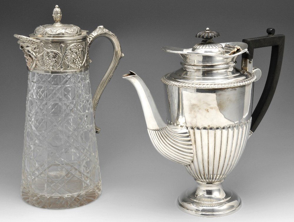 Lot of Assorted Silver Plate, etc. Including Creamer and Sugar, Cups, Pitcher, etc4 days Left(7) COLLECTION OF STERLING & .800 SILVER TABLE & SERVICE ARTICLESFeb 22, 2026A Pair of Polish Hand Cut 24% Lead Crystal Tableware Pieces Pitcher and Lidded JarFeb 15, 2026Collection of silver consisting of pepper and salt shakers, jugs, bell, bowl and statue of a boy,Feb 15, 2026Complete four-piece silver service by Wolfers Frères (Brussels), consisting of a teapot, coffeeFeb 15, 2026Three Piece Sterling Silver GroupFeb 21, 2026Silver coffee pot model 'Egoist' with poinçon Minerve (bottom and in lid) with ebony handle andFeb 15, 2026ANTIQUE SILVER COFFEE TEA SERVICE2 days LeftEnglish Sterling Silver Tea and Coffee Service1 day LeftElegant silver jug, Maison Touron, made in Minerve 1st grade, with a richly modelled, pear-shapedFeb 15, 2026DGH Goldsmith Handwrought Sterling Silver Tea Set 4pc Grape Motif3 days LeftSilver coffee pot with a turned body, chiseled with rocaille and floral ornamentation, France ca.Feb 15, 2026A GEORGE IV SILVER BREAKFAST COFFEE SERVICE MARK OF JOHN CHARLES LOWE, LONDON, 1954Feb 19, 2026A GEORGE V SILVER THREE-PIECE COFFEE SERVICE MARK OF HORACE WOODWARD & CO, BIRMINGHAM, 1921Feb 19, 2026Sheffield Tea Pot And Antique Silver Plate Tea PotFeb 16, 2026Sterling Silver Teapot and Covered Sugar, Marks of William Ball and J. E. Caldwell7 days Left