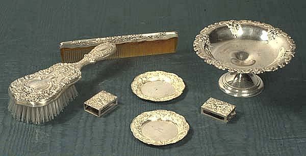 Sterling Silver and Silverplate LotMar 07, 2026Lot of silver cutlery113 Lots AwayANTIQUE ESTATE STERLING LOT INKWELLS MIRROR BRUSHMar 07, 2026Mixed Sterling Silver Jewelry & Accessories Lot, 171.3gMar 15, 202620PC LOT OF STERLING SILVER ITEMS, 44.3 T.O.W.Mar 07, 2026Sterling Silver Assorted Tableware Lot, Including Tray, Shakers, & Spoon3 days LeftASSORTED WEIGHTED STERLING AND OTHER ARTICLES, LOT OF SIXMar 04, 2026WEBSTER CO. AND OTHER STERLING SILVER BOWLS AND SPOONS, LOT OF FOURMar 04, 2026GROUP LOT OF SILVER ITEMS1 day LeftSterling 925, 800 French Silver & Silverplate LOT2 days LeftSTERLING. Huge Lot of Weighted Sterling Items.Mar 08, 2026WALLACE STERLING SILVER SILVERWARE AND SERVING UTENSILS, 'ROSE POINT' PATTERN, C. 1934.2 days LeftVICTORIAN STERLING SILVER VANITY SET2 days LeftGORHAM STERLING SILVER NUT DISHES, & STERLING SILVER TUMBLER2 days LeftFive-Piece Wallace Sterling Silver Dresser SetMar 07, 2026American Silver Four-Piece Dressing Table SetMar 13, 2026