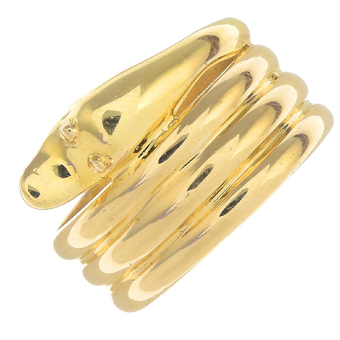 A snake dress ring. Designed as a coiled snake, with