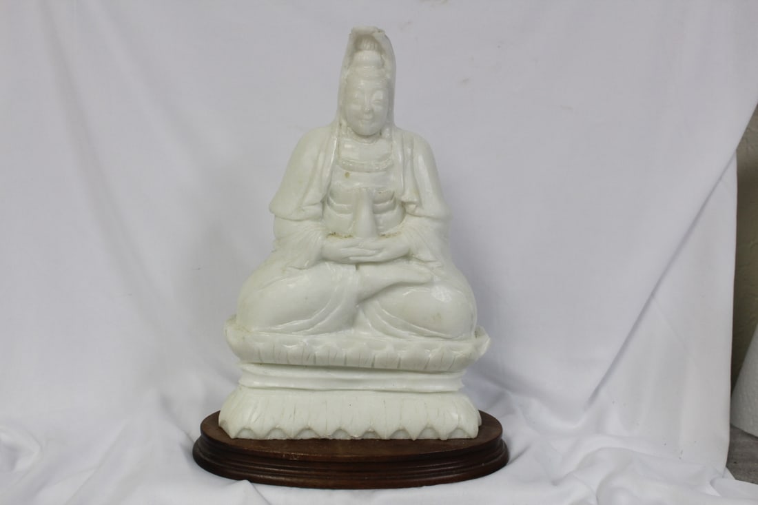 A Solid Marble Kwan Yin on Wood Stand