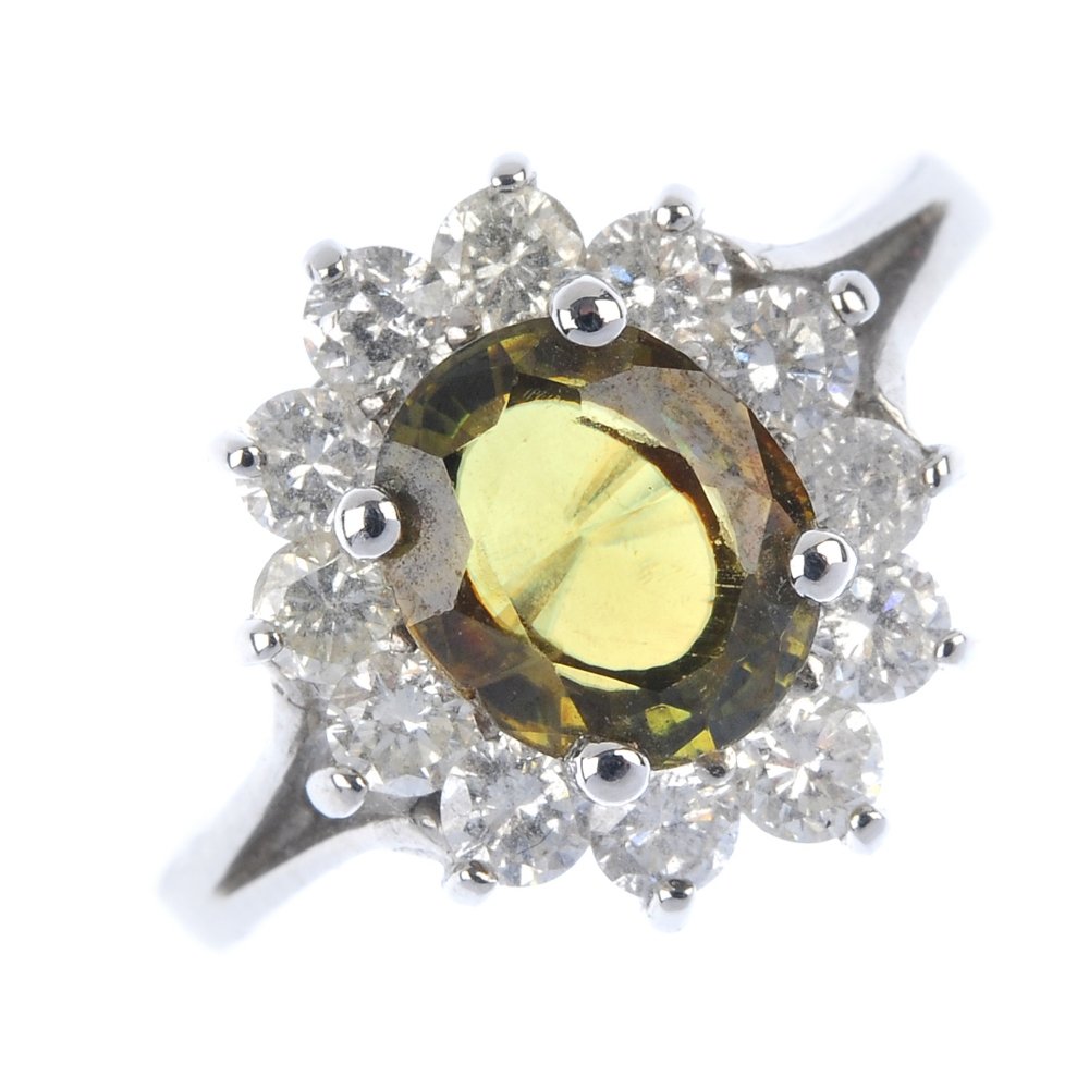 A sphene and diamond cluster ring.