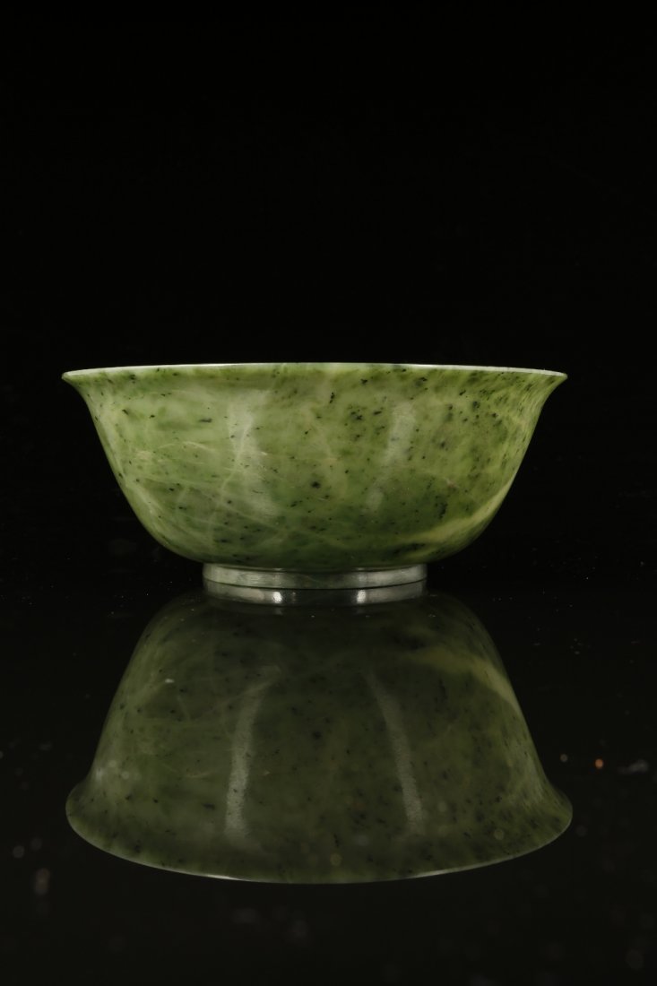 A SPINACH JADE BOWL, the flared lip continuing into a