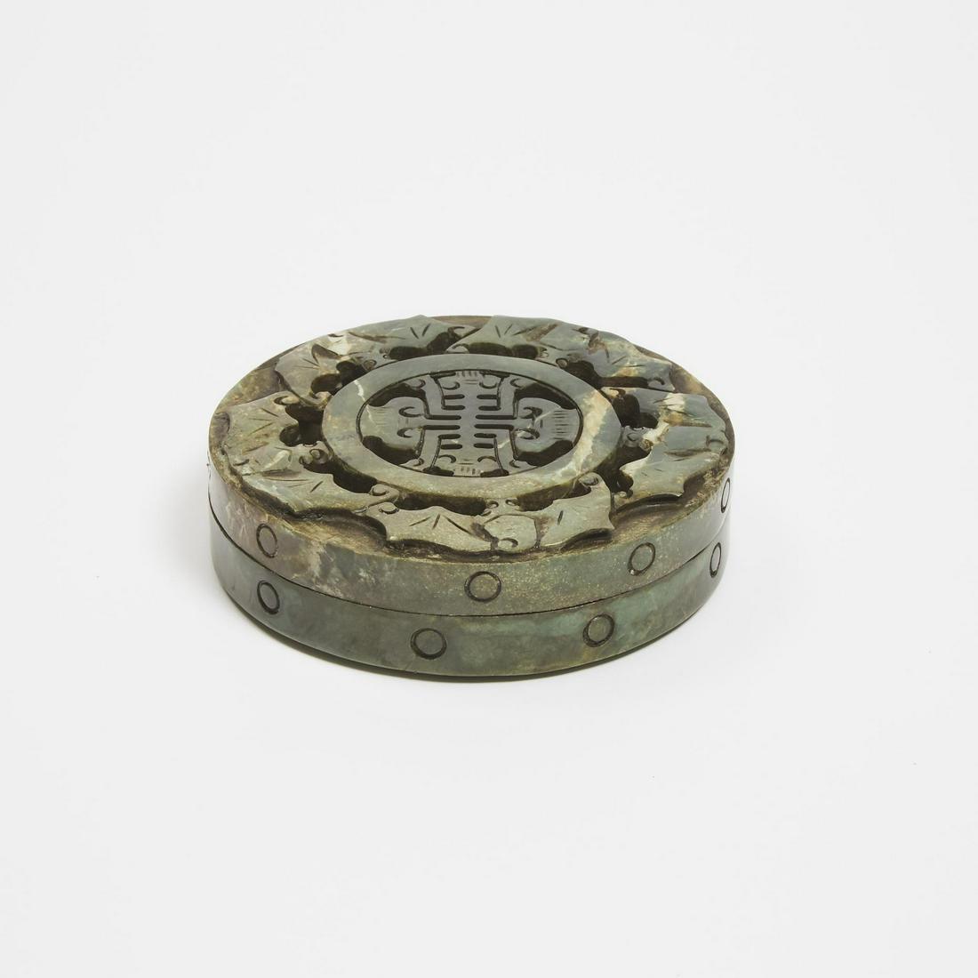 A Spinach Jade 'Five Bats Encircling Longevity' Circular Bo