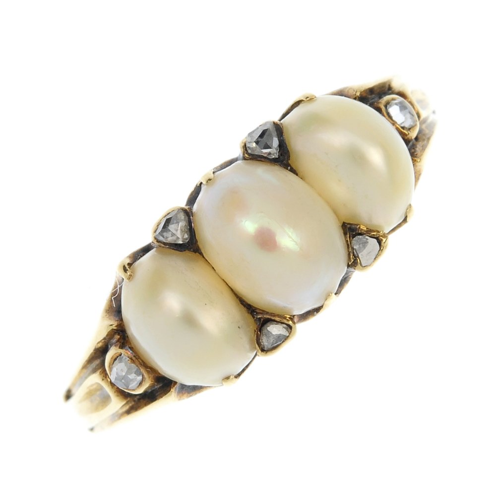 A split pearl and diamond ring.