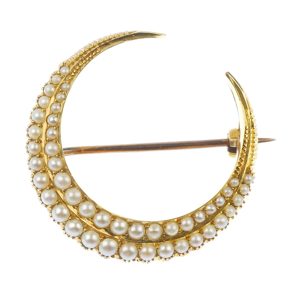 Antique Large Triple Row Diamond & Pearl Gold Crescent BroochBanks Jewellery Auctions4.3(6)See Sold Price