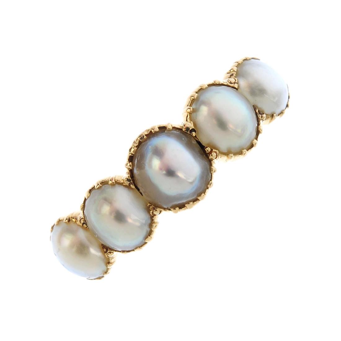 A split pearl five-stone ring. The graduated split