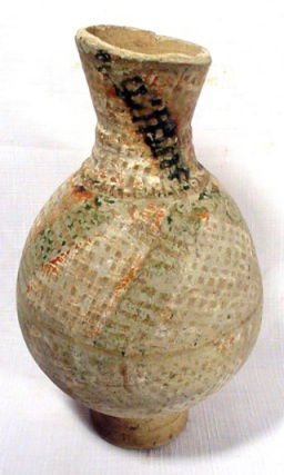 A spouted vase with a flared foot. Remai