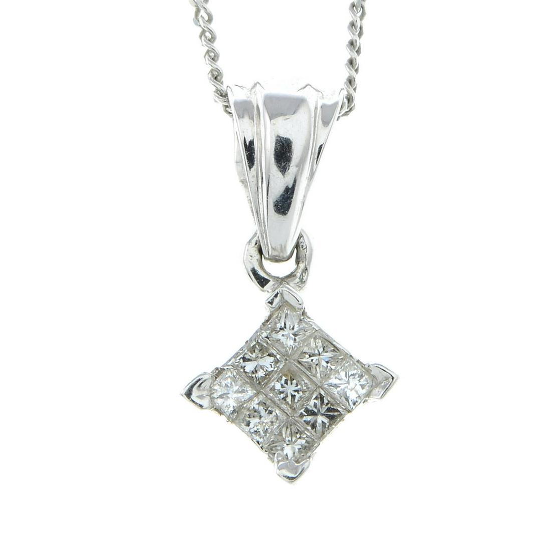 A square-shape diamond pendant, with chain