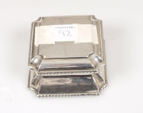 A SILVER CIGARETTE BOX. 282 grams overall. 8.5 cm square.Feb 10, 2026A SILVER SMOKING COMPENDIUMFeb 17, 2026A silver seal box writing desk companion Asprey & Co Ltd, London 1920A SILVER SHAPED SQUARE LETTER TRAYFeb 17, 2026E. Decoster, a Silver Serving Tray, additionally marked Galerie Moderne. Silver, 3.686 kg6 days LeftS. Kirk & Son Repousse Silver Tazza, c. 186014 hrs LeftBirmingham Silver Co. Outstanding Silver on Copper TrayFeb 08, 2026IMPORTANT GEORGE III PAUL STORR SILVER TRAY4 days LeftDERBY AND HORSE RACING INTEREST: a good silver box D & J Wellby, London 1916Rare Loring Andrews Sterling Silver "Castle" Pattern Ink WellFeb 08, 2026English Silver Picture FrameFeb 08, 2026Poole Sterling Silver Clamshell Serving BowlFeb 12, 2026Vintage Sheffield Silver Silverplated Butter HolderFeb 17, 2026WWII TYPE GERMAN BATTLE F STALINGRAD CIGARETTE CASEFeb 14, 2026Elizabeth II Silver Salver, Retailed By Tiffany & Co.Feb 12, 2026Art Deco Nickel Silver Dual Compartment Makeup Compact With MirrorFeb 15, 2026