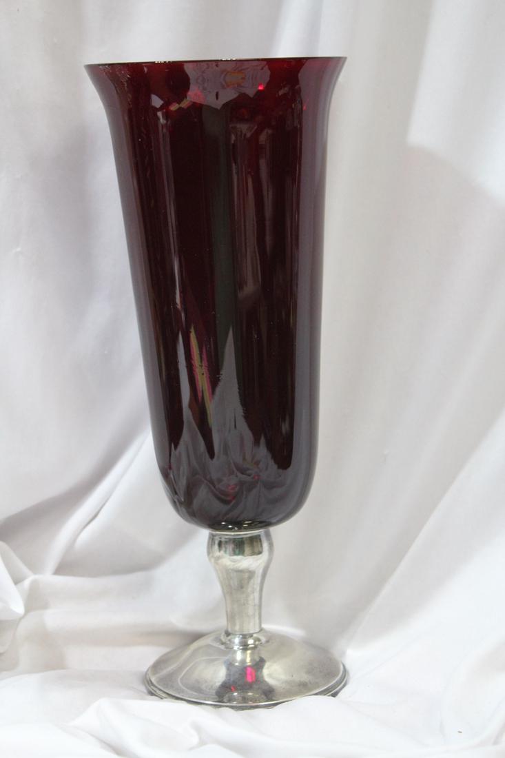 A Sterling Base Ruby Red Gorham Vase