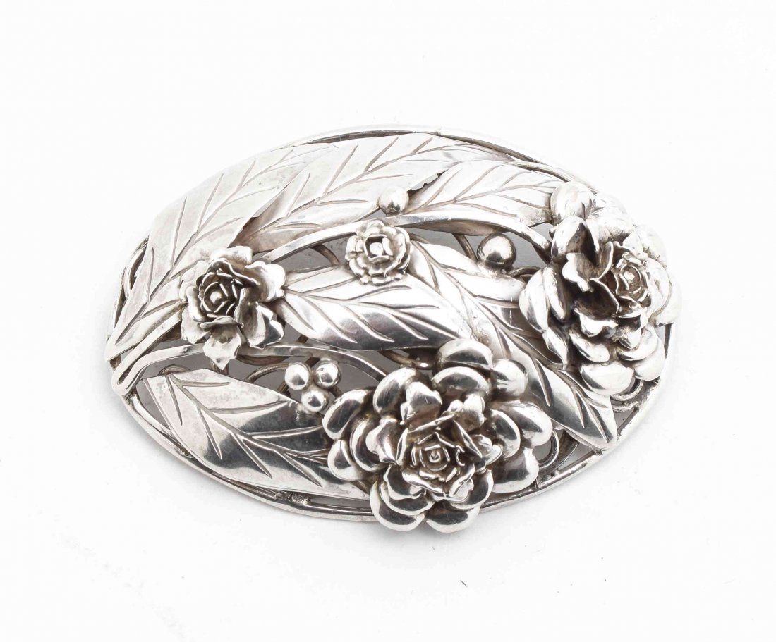 Vintage Sterling Silver Brooch Pin three-dimensional rose flower flanked by two leavesTrash Masters LLC$15Mar 01, 2026
