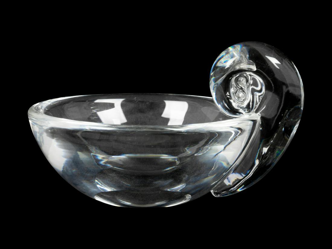 Steuben Snail Handle Glass Bowl