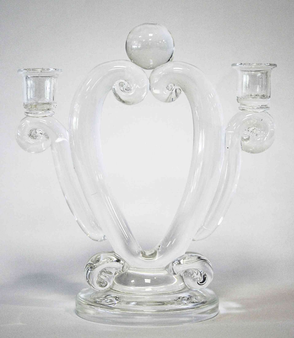 A Steuben Glass Two-Light Candelabrum, Height 8 1/2