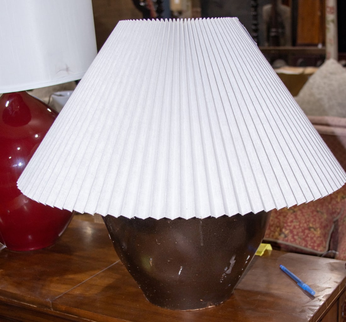 A stoneware jar mounted as a table lamp