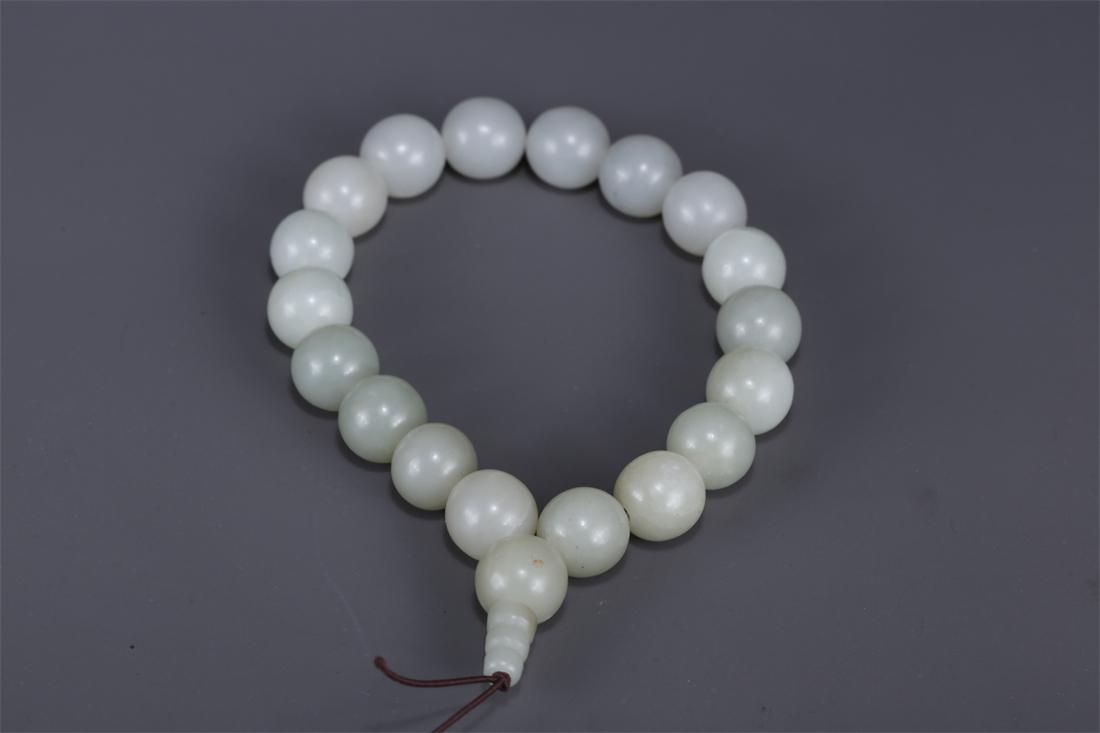 A STRING OF HANDHELD HETIAN JADE BEADS.