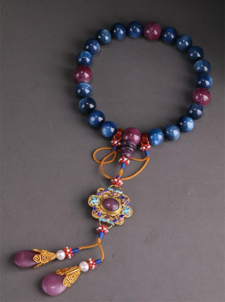 A STRING OF HANDHELD SAPPHIRE BEADS.