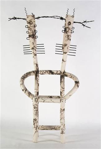 A Studio Ceramic and Wirework Chair, Height 26 inc