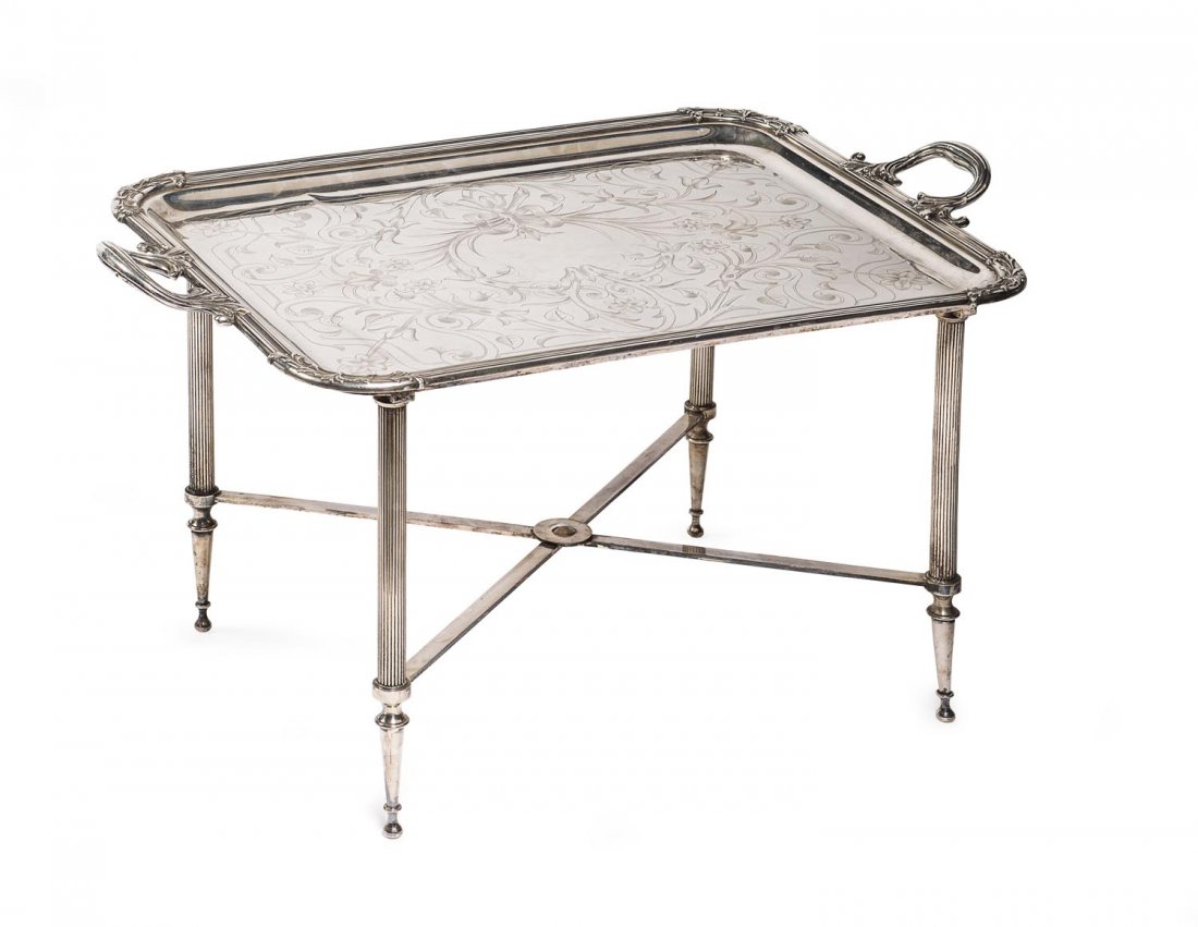 A stylish silver plated rectangular drinks tray on