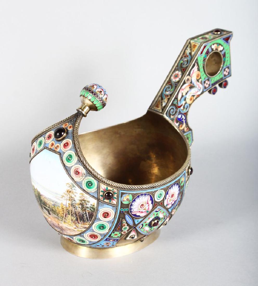 19th C. Faberge Style (71 grams) Russian Enamel Silver Gilt Kovsh2 days LeftLARGE RUSSIAN IMPERIAL SILVER KOVSHMar 21, 2026Ivan KHLEBNIKOV - LARGE RUSSIAN KOVSHMar 21, 2026ANTIQUE RUSSIAN SILVER ENAMEL CREAMERMar 21, 2026RUSSIAN SILVER ENAMEL VODKA CUP fr. SOTHEBY'sMar 21, 2026Russland 84 Zolotniki Silber Kovsh / Kowsh - Mikhail Fyodorovich Sokolov 1860-1890,Mar 14, 2026RUSSIAN IMPERIAL SILVER KOVSH w. TROIKAMar 21, 2026RUSSIAN GILT SILVER CLOISONNE ENAMEL TEA GLASS HOLDER3 days LeftA Qing Dynasty copper tire cloisonné enamel floral pattern lifting potMar 21, 2026Antique Russian 88 Silver Enamel Spoon - Spoon - .916 (88 Zolotniki) silverMar 14, 2026A fine hand-painted silver filigree base pastel enamel colored porcelain bowlMar 07, 2026A gilded gemstone cloisonn é enamel lion button aroma burner from the Qing DynastyMar 14, 2026Russian Silver-Gilt and Cloisonne Enamel BeakerMar 15, 2026RUSSIAN SILVER ENAMEL SALT CELLAR, 1895Mar 21, 2026An Exquisite Bronze Inlaid Gold and Silver Inlaid Turquoise CenserMar 13, 202619th Century F. Barbedienne Bronze Champleve Enamel Bonboniere2 days Left