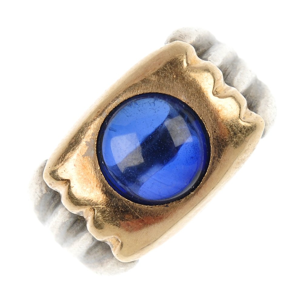 A synthetic sapphire ring.