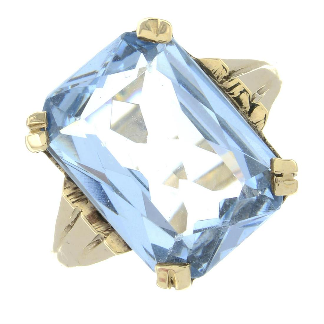 A synthetic spinel single-stone ring.