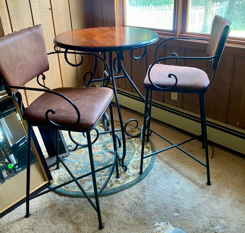 White Metal Bistro Table with Two Floral Back Chairs, Vintage Patio Dining SetChicago Estate Advisors4.3(7)$1004 days Left