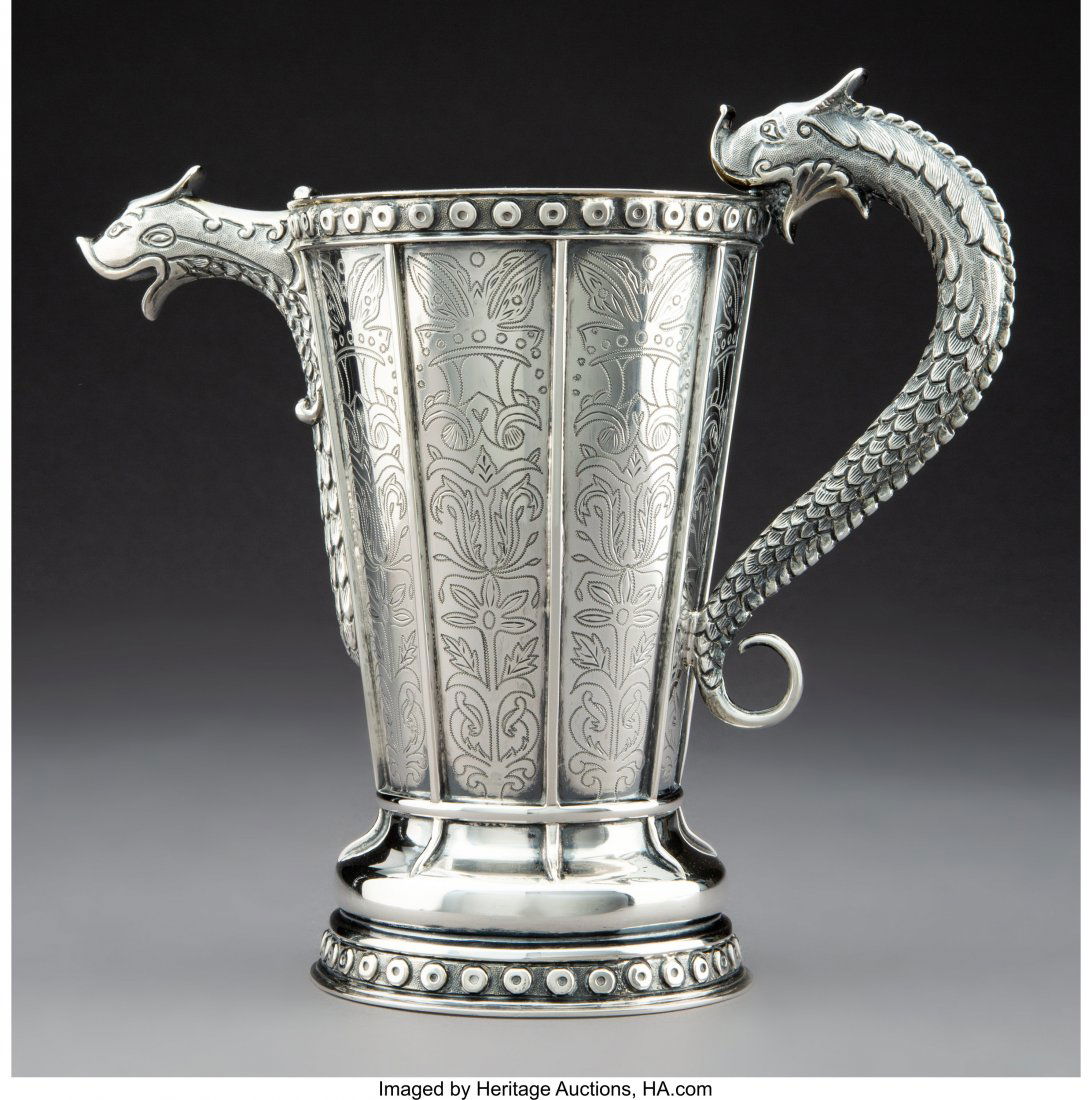 George III Sterling Silver Coffee PotMar 16, 2026AMERICAN SILVER PLATED WATER PITCHER W SQUIRREL FINIAL5 days LeftGeorge II English Silver Coffee Pot6 hrs LeftDavid Andersen Silver Covered TankardMar 16, 2026A SILVER GILT DRAGON EWER5 days LeftGeorge II Irish Silver Coffee Pot, Charles Leslie6 hrs LeftEnglish Silverplate Repoussé Coffee UrnMar 07, 2026Garrett Eoff Silver PitcherMar 14, 2026Rare George I Irish Sterling Silver Tankard (1715)Mar 05, 2026Antique Silverplate Baluster Coffee PotMar 17, 2026George III English Silver Coffee Pot, John Robbins6 hrs LeftGeorge II Sterling Silver Armorial Tankard, 1744Mar 15, 2026Pedestal Pitcher, Solid Sterling SilverMar 21, 2026Gorham Applied Metals Sterling Silver Copper Water Pitcher Aesthetic Movement6 days LeftA Precious Silver 'Auspicious Beast& Ocean' EwerMar 14, 2026Good Gorham Sterling Silver PitcherMar 12, 2026