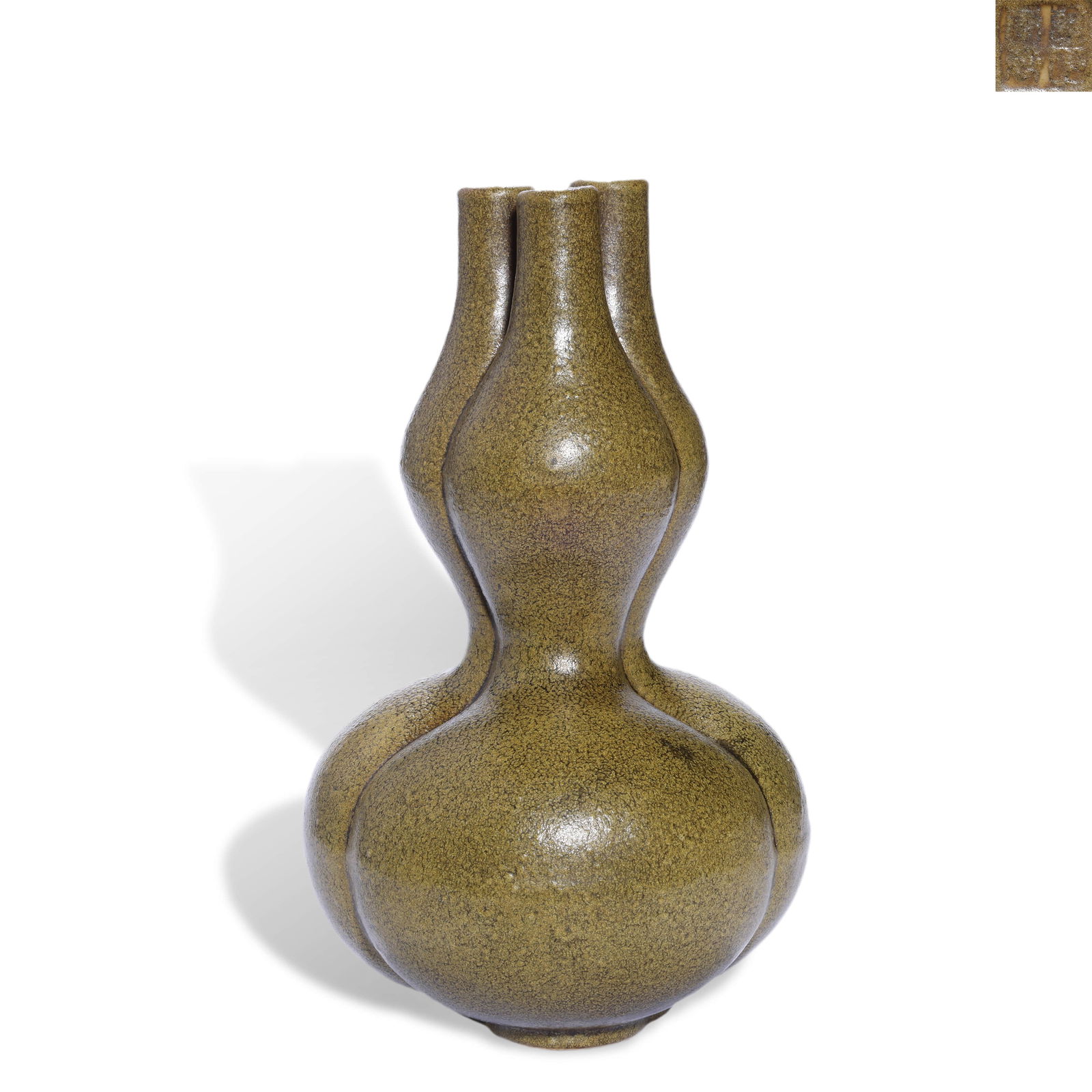 A TEA-DUST GLAZED GOURD-SHAPED VASE