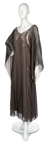 A Teal Traina Black Chiffon Evening Gown,
