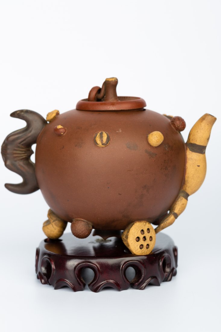 SoldChinese Yixing Melon Formed TeapotChinese Yixing Melon Formed Teapot Chinese Yixing Melon Formed Teapot, base impressed with four character mark. 6 3/4 in (17.0 cm) x 3 5/8 in (9.0 cm)See Sold Price