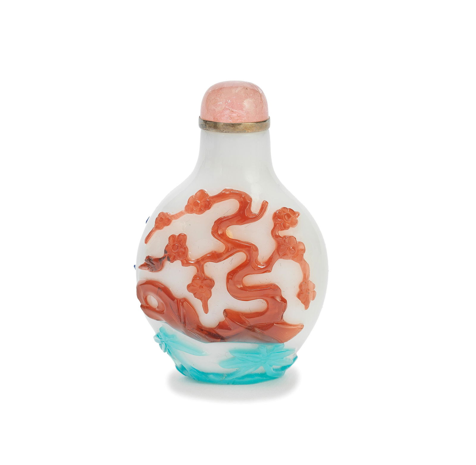 A THREE-COLOUR OVERLAY GLASS SNUFF BOTTLE Circa